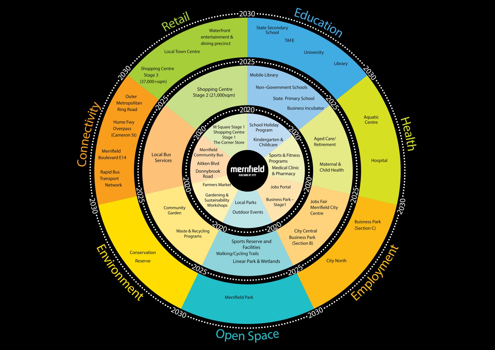 The Merrifield vision adds value beyond the masterplan offer: improving the overall customer experiencing, enhancing community connectedness and wellbeing, and creating a place that is authentic.