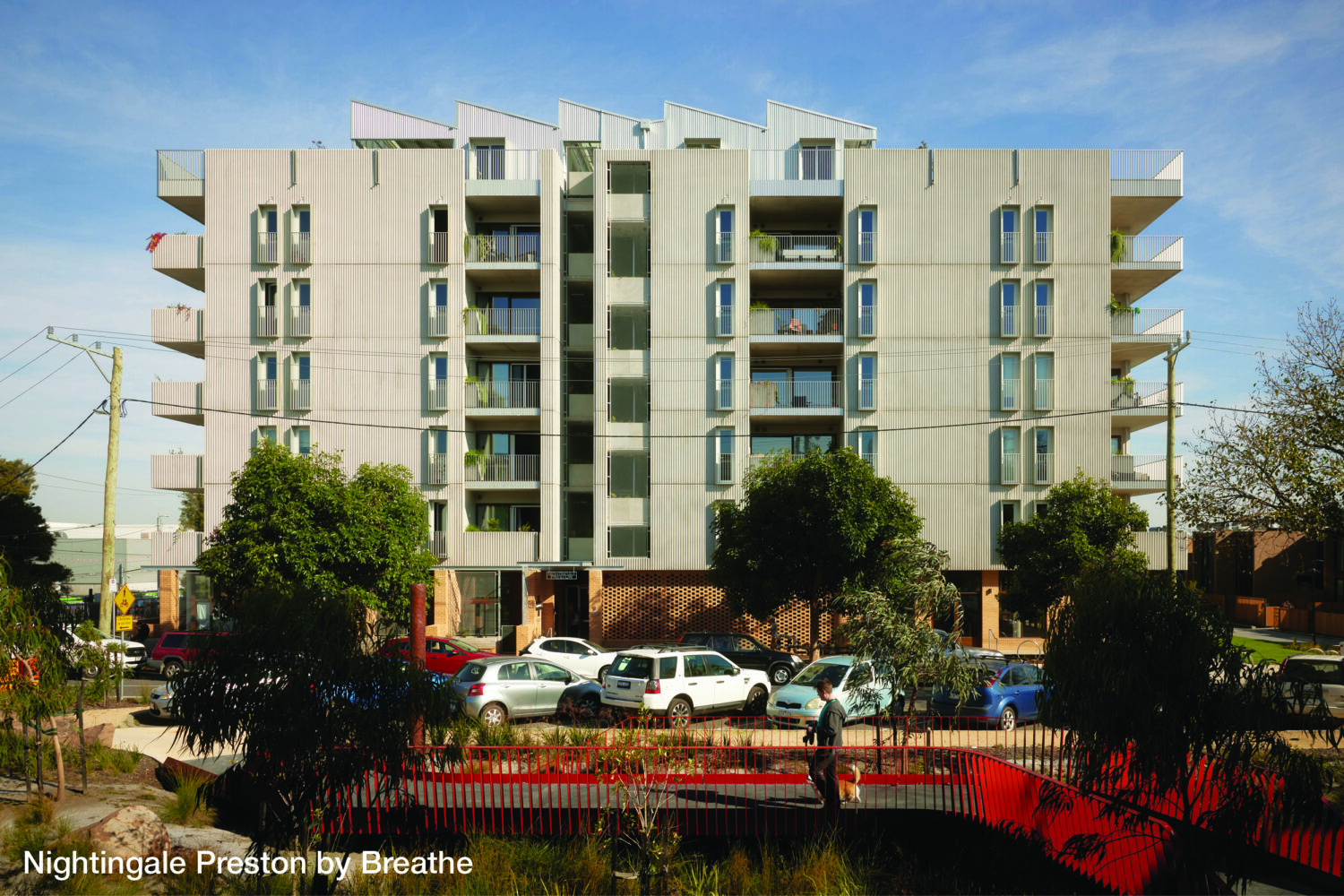 The three completed stages are within the Oakover Road neighbourhood of Preston Crossing and include 26 townhouses designed by Archier, 52 Nightingale apartments by Breathe, and 94 social and affordable apartments by Hayball. All homes are connected by a pedestrian focused public realm featuring a community pocket park, and with many families now calling Preston Crossing home, this new neighbourhood’s already full of activity.
