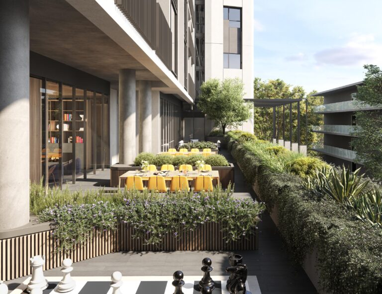 Office workers will have access to the adjoining north facing level one communal balcony garden, end-of-trip (EOT) facilities and a ground floor café with an alfresco area catering to residents and office users. Maximizing natural light, the workspaces feature double glazed openable windows and balcony sliding doors opening onto private balconies.