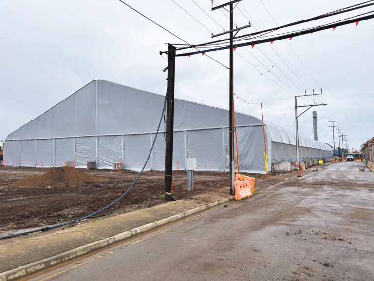 MAB’s contractor recently commenced installing the remediation tents (pictured below) to ensure the eighteen-month remediation process is safely conducted to the highest standards and in accordance with the Environment Protection Act. The moveable, tent-like structures will cater for multiple earthmoving machines, trucks and enable contractors to safely excavate the ground and treat contaminated soil.
